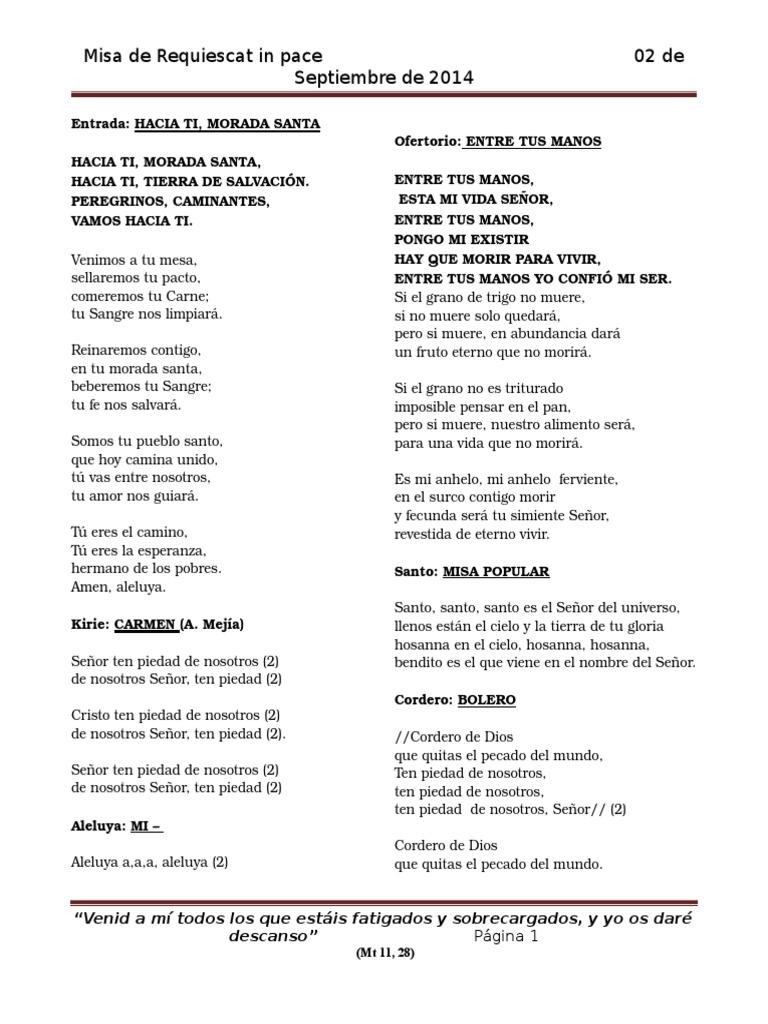 Difuntos Entre Tus Manos Letra : Morir para vivir entre tus manos confió mi ser si el grano de trigo no muere si no muere sólo quedaran pero si muere en abundancia dará un fruto eterno que no morirá señor.