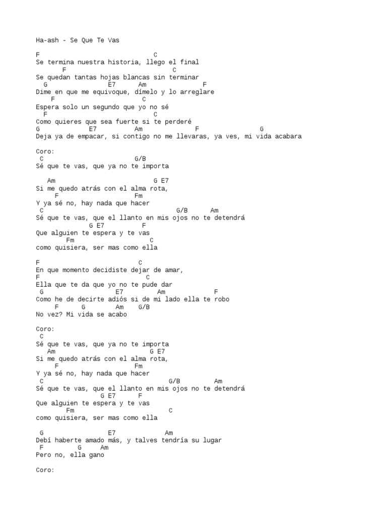 Ha*Ash Sé Que Te Vas / La pista tiene dos versiones, una en solitario y otra en colaboración con el grupo mexicano matisse.