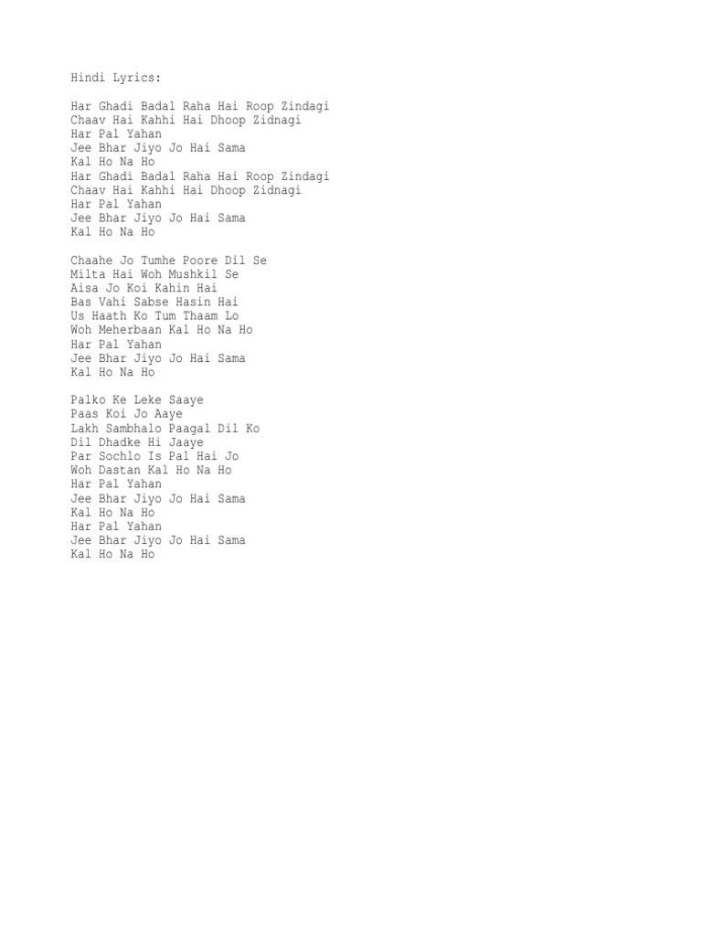 Har Ghadi Badal Lyrics In English / Each hindi note is matched precisely with the lyrics of the song.